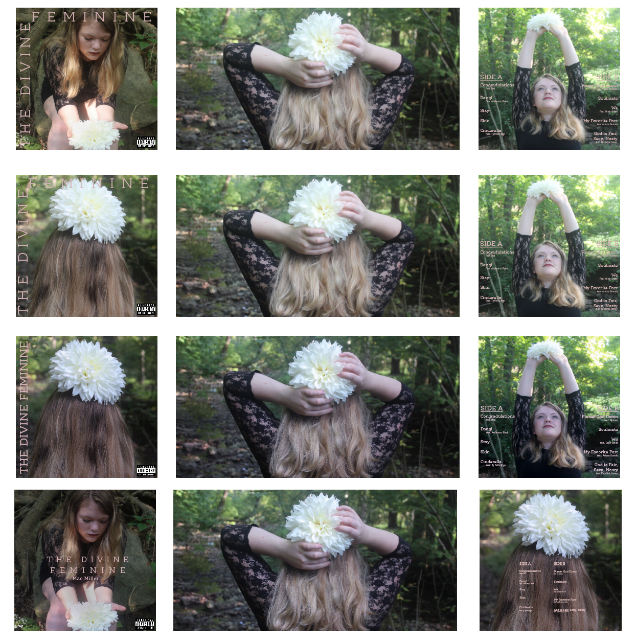 I had many different iterations of the end result. There were different typefaces, images, order of pictures, etc. It was all trial and error to achieve that “Divine Feminine” qualities.